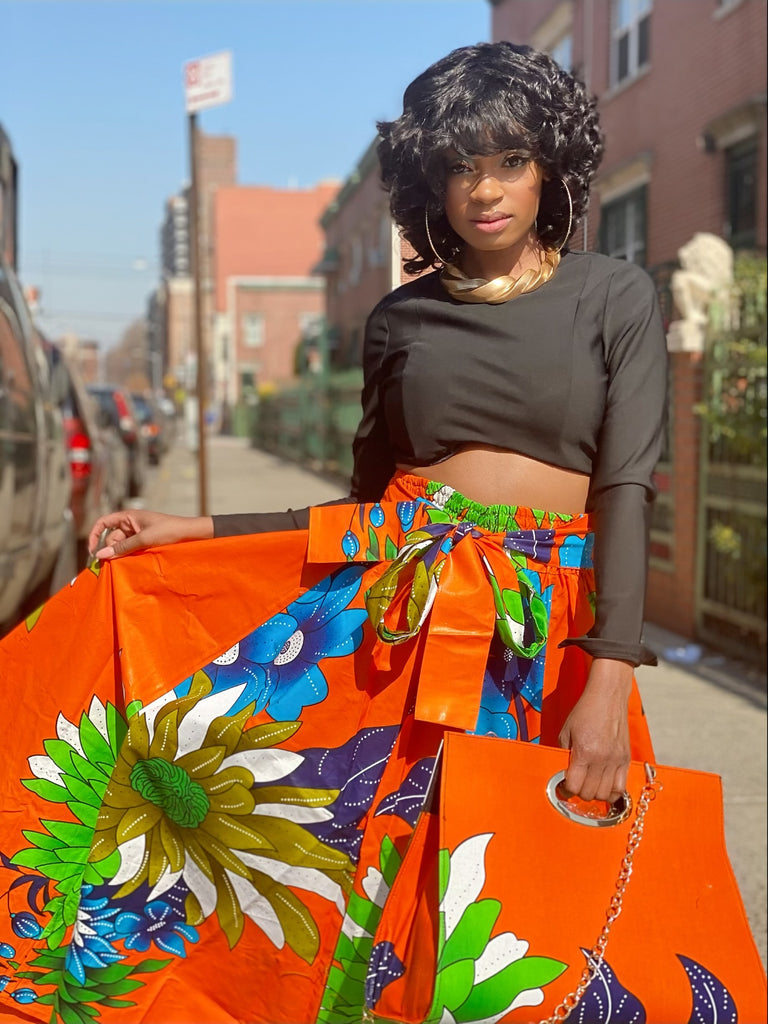 Add a new statement piece to your wardrobe! Our African Skirt Sets consists of a maxi skirt, Headwrap and bag. The skirts are one size fits all.