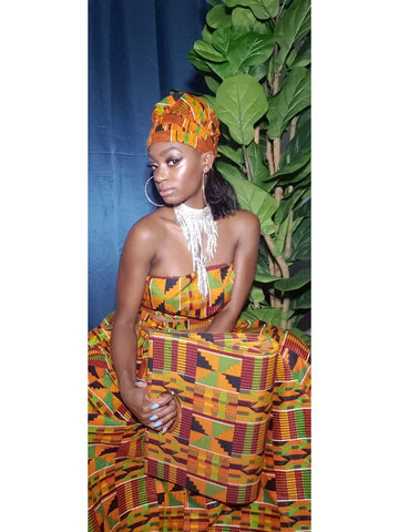Her Majesty Kente headwrap, and Maxi Skirt Set (Fall Best Seller) ( REGULAR + PLUS)